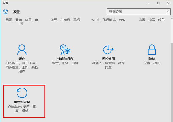 1、从开始菜单中打开设置,然后选择“更新和安全”;