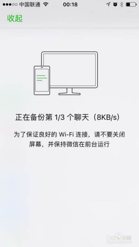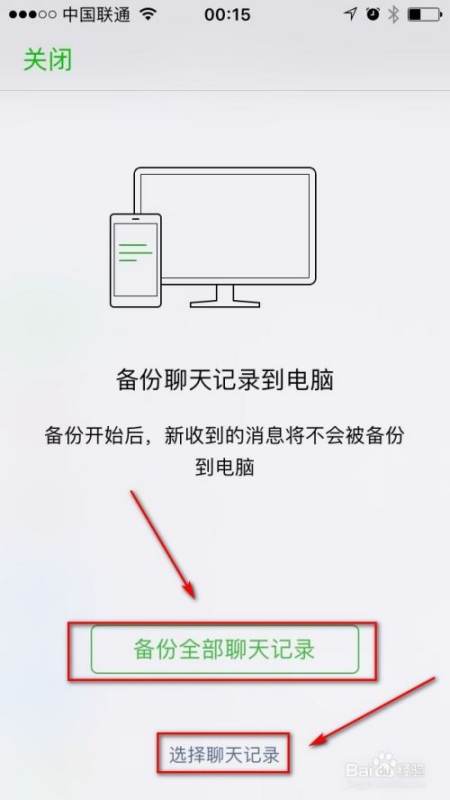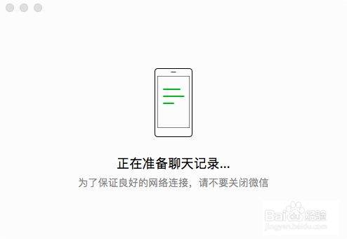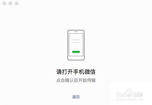 网络连接正确后,我们点备份聊天记录到电脑,电脑上会出现提示让我们打开手机微信。