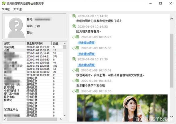 3,这样,安卓手机上的所有微信好友及对应的聊天记录就同步到了电脑软件上,如下图所示。