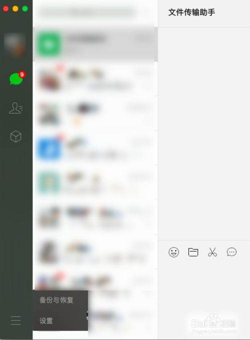 首先打开电脑微信,左下角有个菜单,点击可以看到备份与恢复,如图。