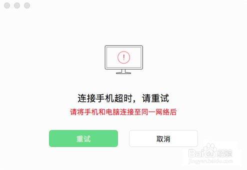 首先,我们要确保此时电脑和手机处在同一个网络下,一般只要是使用相同的WIFI就可以,否则会出现如下错误提示,如图。