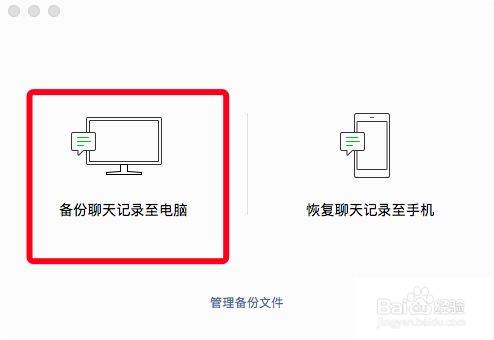 打开后会看到两个选择图片:备份聊天记录到电脑;恢复聊天记录到手机,如图。