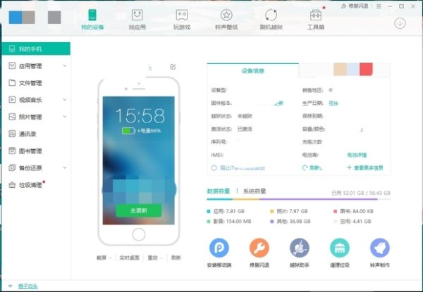 1,把要同步微信聊天记录的苹果手机连接到电脑上。