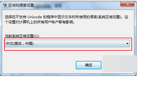 6、最后,电脑开机之后,再次来到这个对话框,将系统区域设置选择为中国中文,到此,电脑上出现字体乱码的问题就已经解决了: