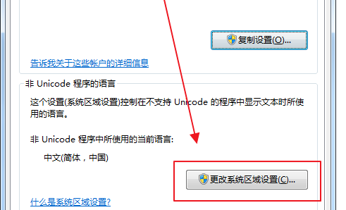 4、接着,在弹出的对话框中点击“更改系统区域设置”: