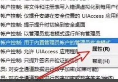 在桌面左下方搜索框中输入运行,在弹出的窗口中输入gpedit.msc,点击确定。依次点击计算机配置-Windows设置-安全设置-本地策略-安全选项。进入用户账户控制选择属性,点击已启用即可。