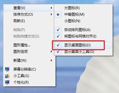 右击桌面空白处,选择“查看”,然后选中“显示桌面图标”。
