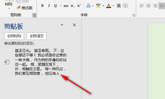 3、打开剪贴板之后,就可以看到刚才复制的文字了。