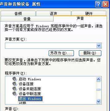 “退出Windows”声音取消。如果Windows正常关闭,则问题是由退出声音文件所引起的,要解决这一问题,可以从备份中恢复声音文件或者重新安装