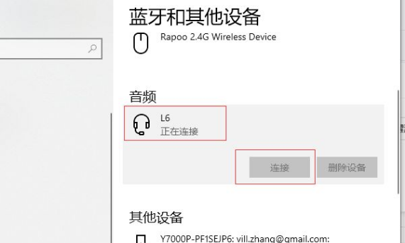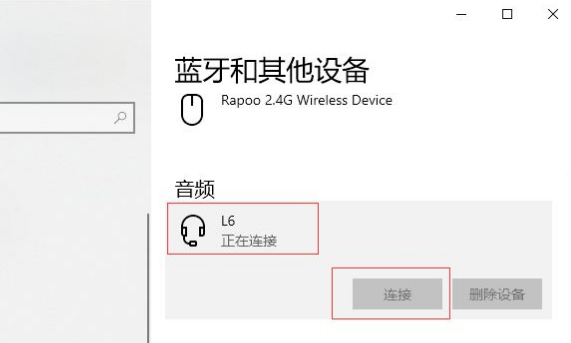 3、如果以前连接过蓝牙耳机,音频中会保留蓝牙二级信息,点击音频下的蓝牙耳机,弹出操作按钮,点击“连接”即可连接已保存的蓝牙耳机。