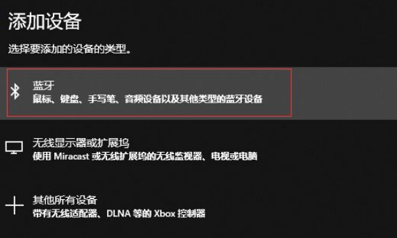 5、弹出添加设备面板,点击“蓝牙”开始搜索蓝牙设备。