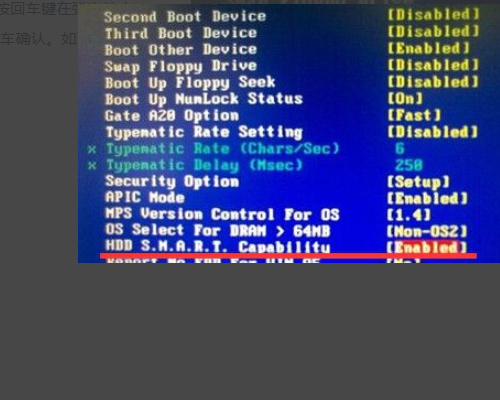 3、接着还在Advanced BIOS Features界面中,选择[HDD S.M.A.R.T. Capability]磁盘自动监控及回报功能,按回车键在弹出的小窗口中选择“Enabled”回车确认。