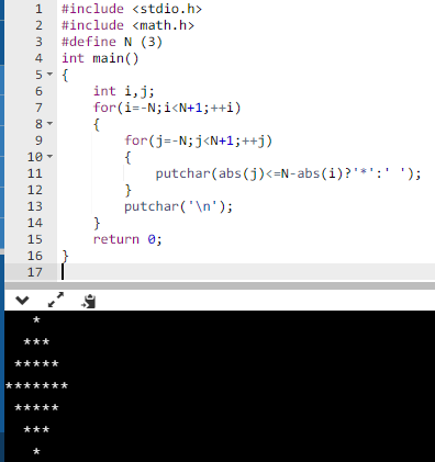 putchar(abs(j)<=N-abs(i)?'*':'');