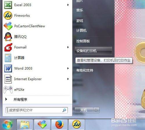 打开开始菜单,打开设备和打印机