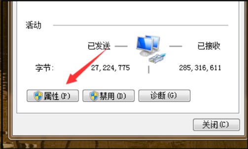 2、然后在打开的窗口,点击【属性】按钮。