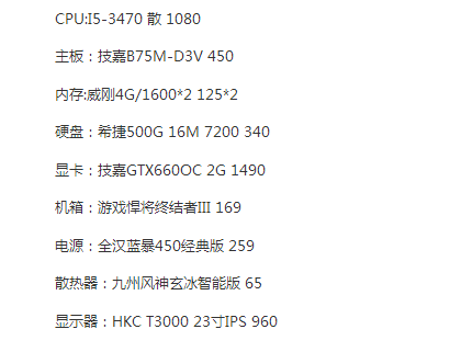 1、CPU: Intel 酷睿i5 4570(盒)¥1225。