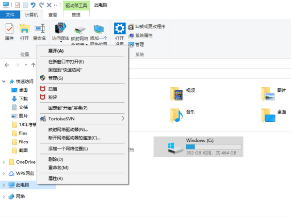 首先打开一个文件夹,可以点击文件夹图标或使用组合键windows+E,则会看到我们的电脑,相当于win7 我的计算机