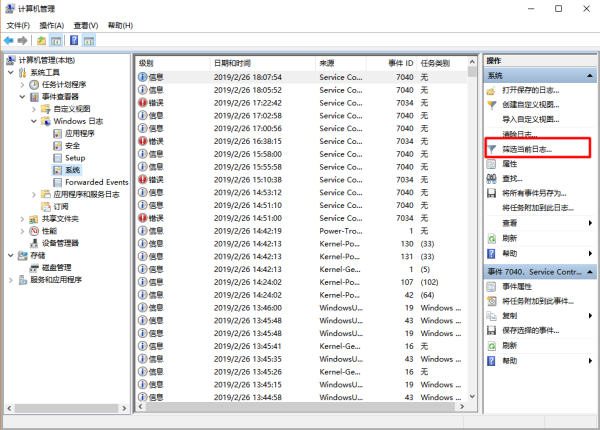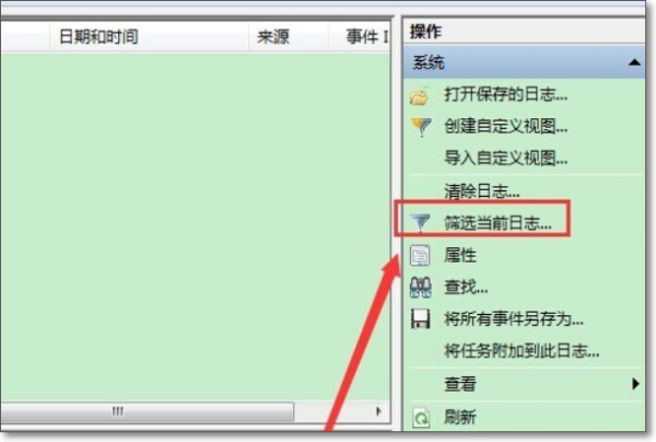 4. 此时看到是日志信息,就是系统所有记录的log。然后右侧,我们选择 “筛选当前日志”