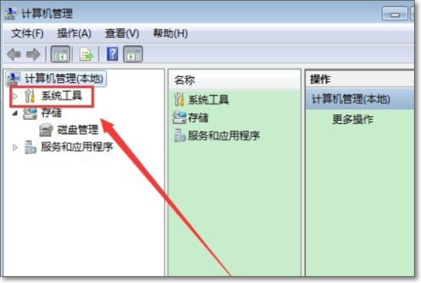 2、点击进入属性选项之后,点击左边的系统工具,如图所示。