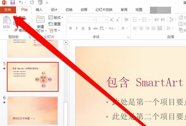 1、打开PPT2013,创建PPT文件。进入PPT文稿页面后,点击文件按钮。