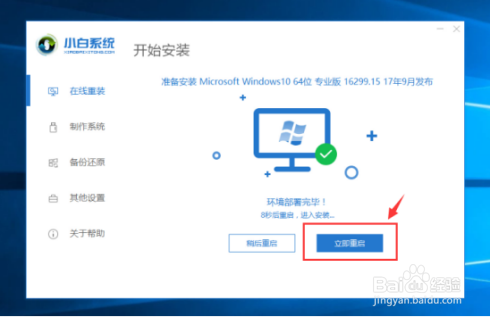 等待下载win10系统完成以及环境部署好了自动重启电脑。