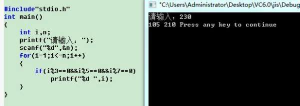 if(i%3==0&&i%5==0&&i%7==0) /*能同时被3,5,7整除*/