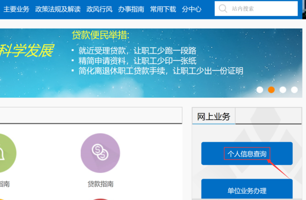 2、进入后,在首页右侧找到”网上业务“,点击”个人信息查询“。