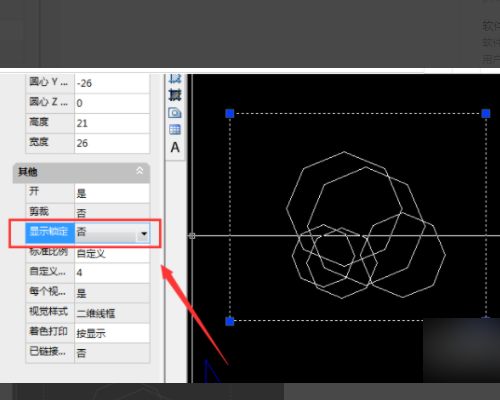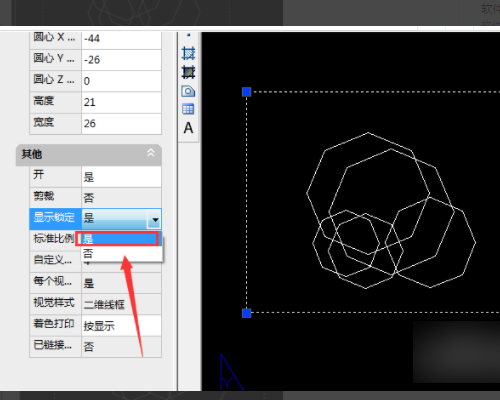 4、选中视口,在特性栏里面会看到显示锁定,目前显示是否。
