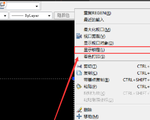 1、选中视口,右击,点击显示锁定,如下图所示。