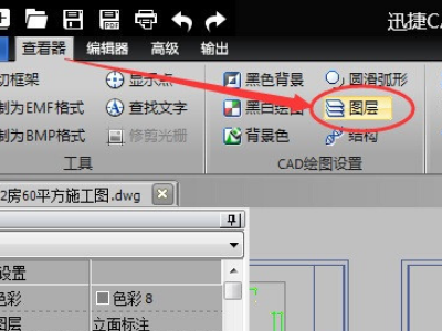 2、文件打开后,在“查看器”面板内容,点击选择“图层”工具打开图层窗口。