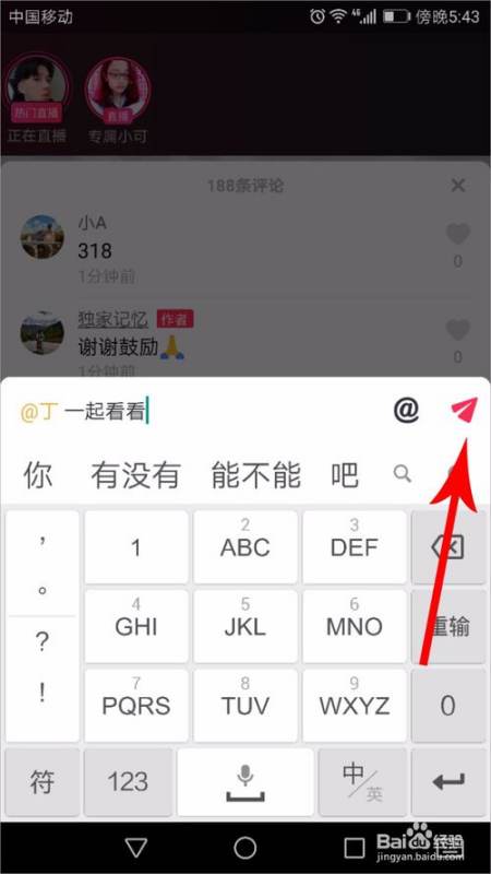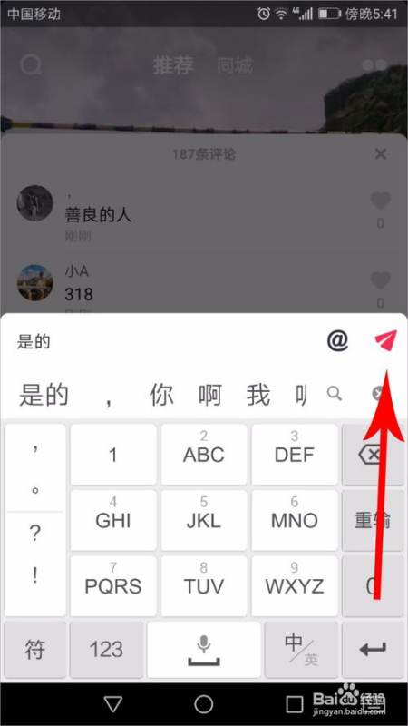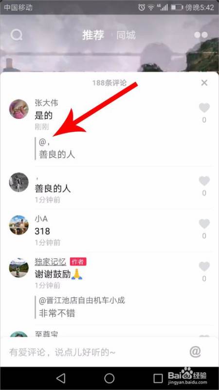 然后输入文字信息,最后点击右侧的发布按钮。接着查看评论列表,可以看到自己的评论内容下面写着“@XXX”的文字提示