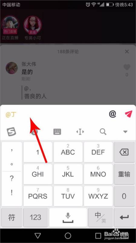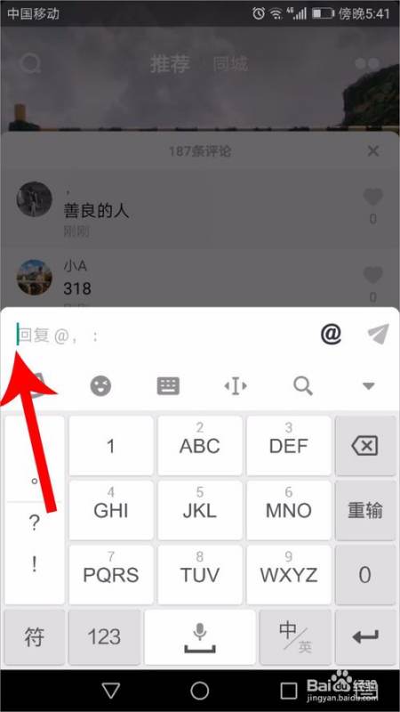 页面底部弹出输入法弹窗后,可以在文字输入框中看到“回复@XXX”的文字提示