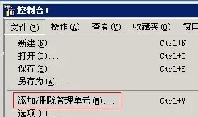 2:在弹出的控制台窗口菜单中选: 文件->添加/删除管理单元 如下图【回答】