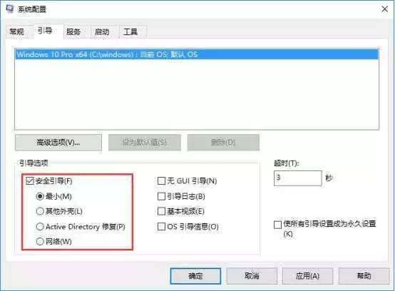 问题解决后,记得在安全模式中再次进入上述窗口取消勾选“安全引导”,然后重装正常进入系统。