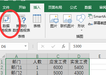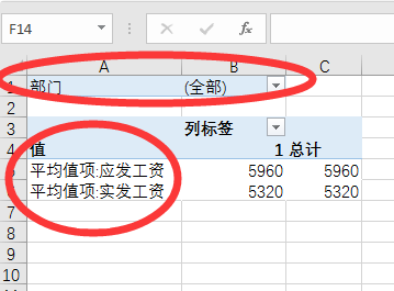 5、即可根据部门统计人数和将“应发工资和实发工资”设置为平均值。