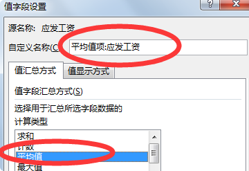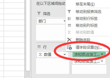 3、然后点击“应发工资和实发工资”右侧的下拉选项点击“值字段设置”选项。