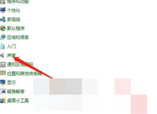 2、进入“控制面板”界面后,点击“声音”键,进入“声音”界面。