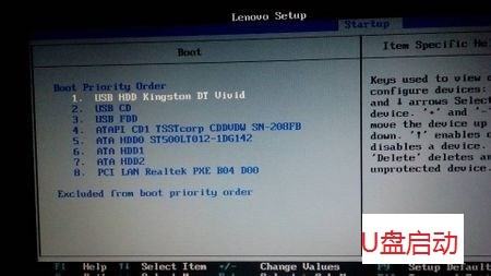 B、进入BOOT(或startups)选项卡选择U盘(有USB-HDD、USB-FDD等不同格式,优先选择USB-HDD)为第一启动项并回车确定(注:部分电脑需要在此时插入U盘进行识别才能设置)。