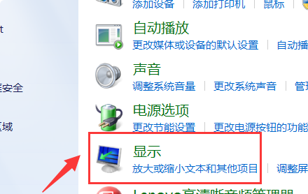 3、在弹出的【硬件和声音】中,找到【显示】选项,并点击它。