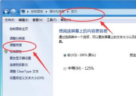 4、在弹出的【显示】窗口中,找到【调整亮度】选项,并点击它。