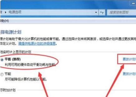 5、在弹出的【电源选项】窗口中,找到【平衡】按钮,然后点击后面的【更改计划设置】链接。