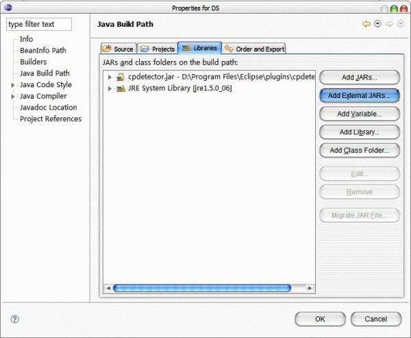 2.在Properties页面中选中Java Build Path,选中Libraries标签,点击Add External JARs。