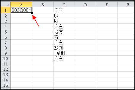 2、然后选中A1单元格,键入公式:="003Q"&TEXT(COUNTIF(C$1:C1,"户主"),"000"),按下enter键。
