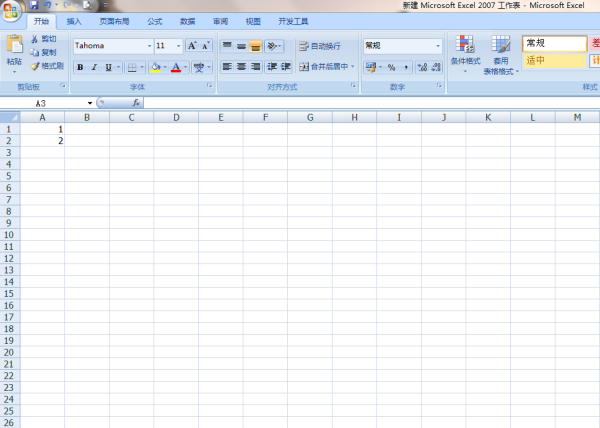 新建excel文件,在所需要填写序号的第一行单元格中输入“1”,第二行单元格中输入“2”,用鼠标选中“1”和“2”的单元格,“2”单元格右下角显示为“+”,点击并下拉即可把序号自动递增。