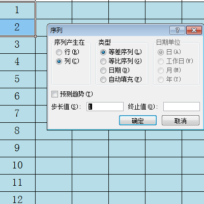 2、步长值默认是1,可不用改,终止值可以根据需要填写,比如需要填充序号从1-100, 终止值就设置成100。