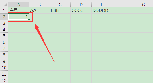 步骤二:在内容为“1”的下方单元格输入“2”。