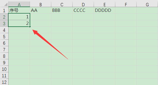 步骤四:“2”的单元格右下角变为“+”,用鼠标点击并下拉。
