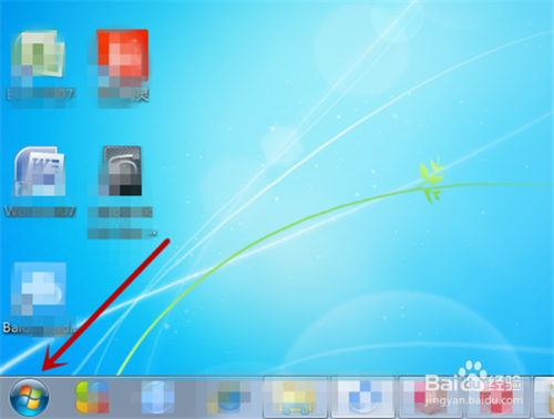首先我们需要退回到电脑的桌面,点击左下角的“开始菜单”按钮,打开选项菜单,如图所示。