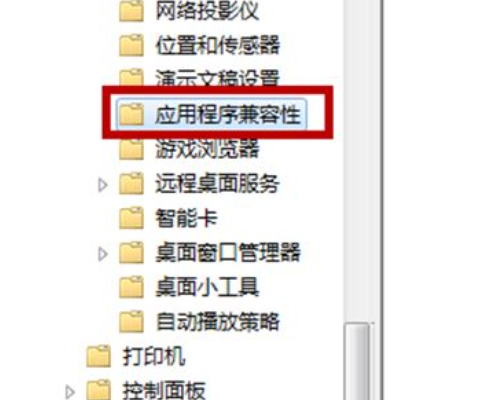 之后我们找到”应用程序兼容性“点击进入,在左侧即可打开里面的选项,如图所示。