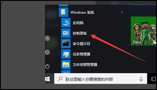 1、首先,在开始菜单中,点击控制面板按钮。如下图所示。